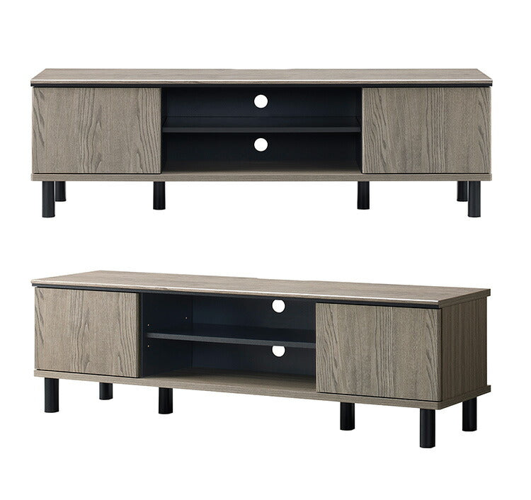テレビ台 グレー×黒 約幅140 脚付き 木製 収納家具 TVボード AV収納 ロータイプ グレー調 ブラック モダンインテリア グレージュ(代引不可)