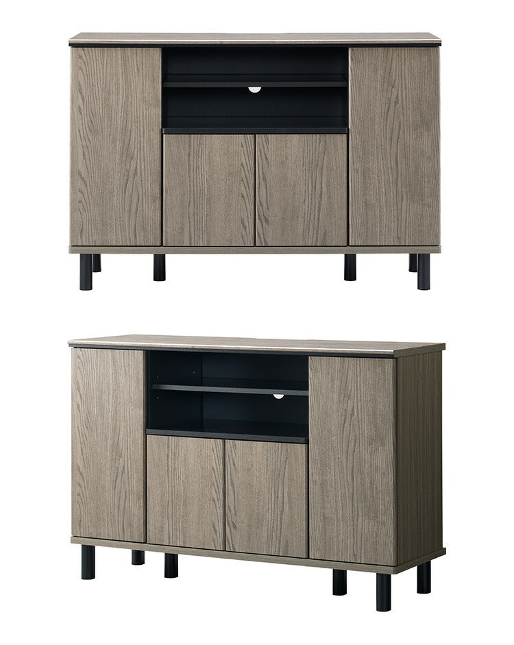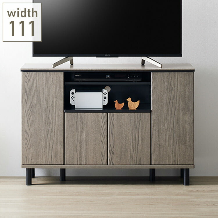 キャビネット グレー×黒 111cm 北欧 木製 脚付きおしゃれ 木目調 TV台 サイドボード 扉付き ハイタイプ 収納 大容量 キャビネット AV収納 棚 上品 高級感 寝室 グレージュ(代引不可)