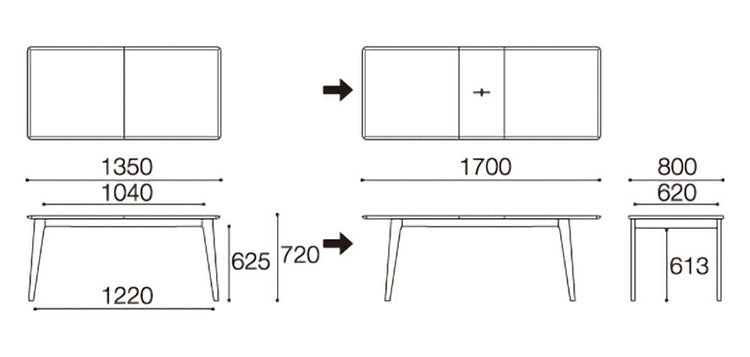 幅135(170)×奥行80×高さ72cm