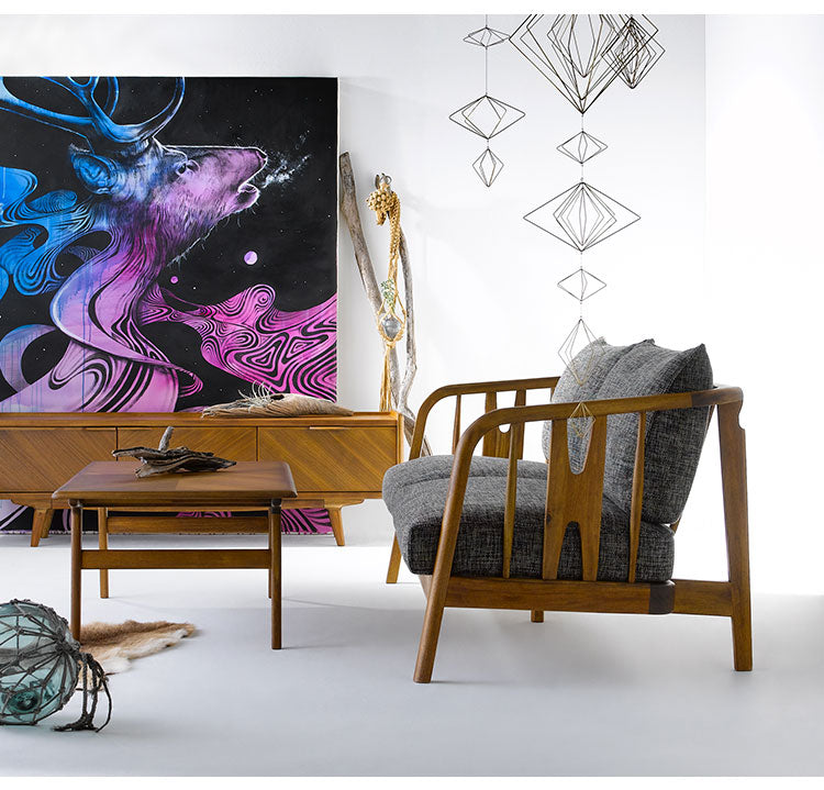 シンプルデザイン(曲線にて優しい)、オイルフィニッシュ(亜麻仁油オイル)、ハンドメイド性(小ロッドにてこだわりのある製品作り) 。