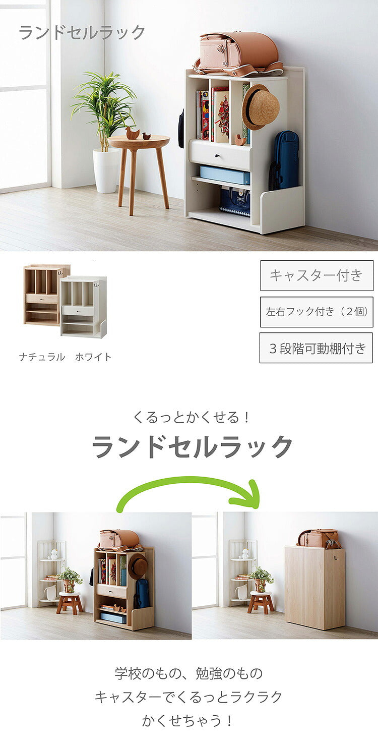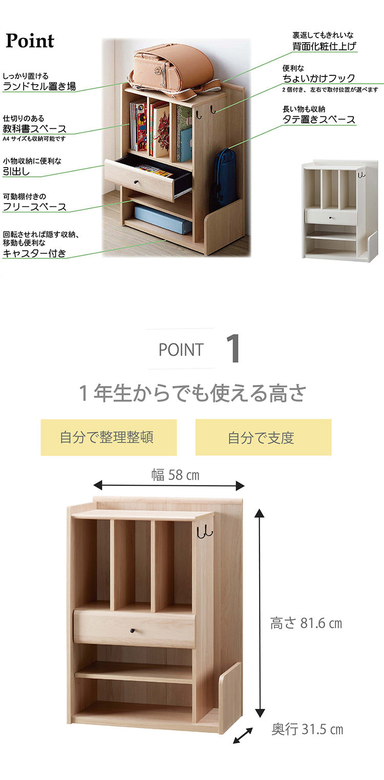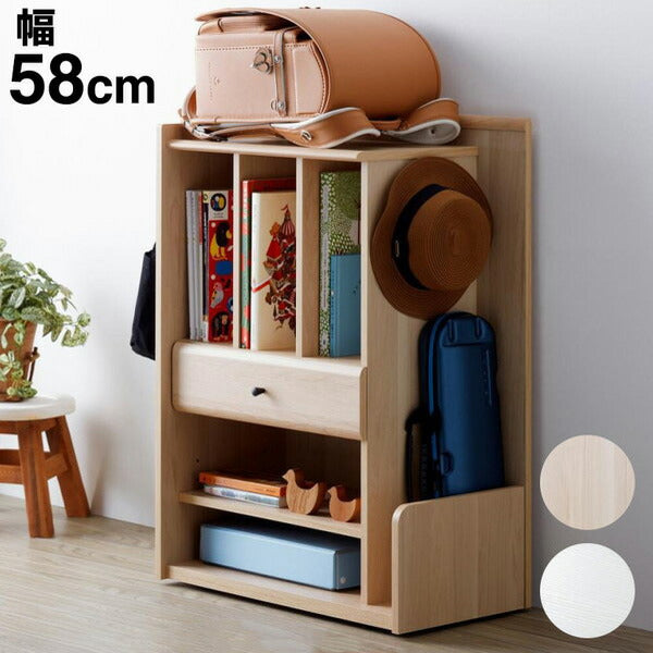 ランドセルラック ラプラ 木目調 天然木 木製 おしゃれ 北欧 幅58 コンパクト スリム 横置き付き 引き出し付き ラック オープンラック 収納(代引不可)