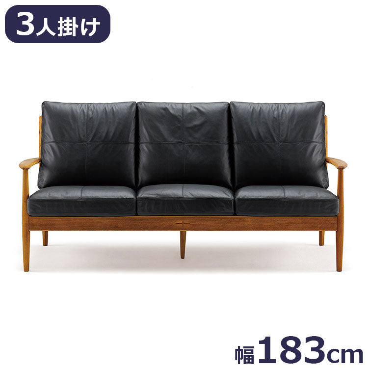 エッダ EDDA 3人掛ソファ 北欧ビンテージスタイル シンプルデザイン オイルフィニッシュでナチュラル&ハンドメイド ハイクオリティロープライス 3人 3人掛け ソファ 183cm×83.5cm ブラック開梱設置 (代引不可)