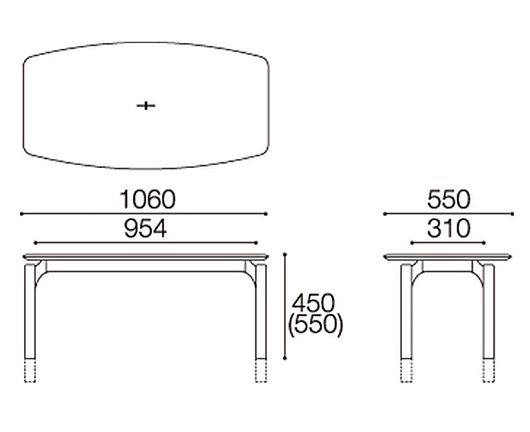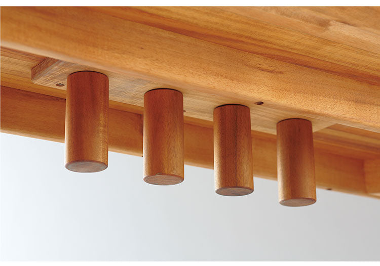シンプルデザイン(曲線にて優しい)、オイルフィニッシュ(エゴマオイル)、ハンドメイド性(小ロッドにてこだわりのある製品作り) 10cmの継ぎ脚を付属して天板高さが調整可能(45cm or 55cm)。
