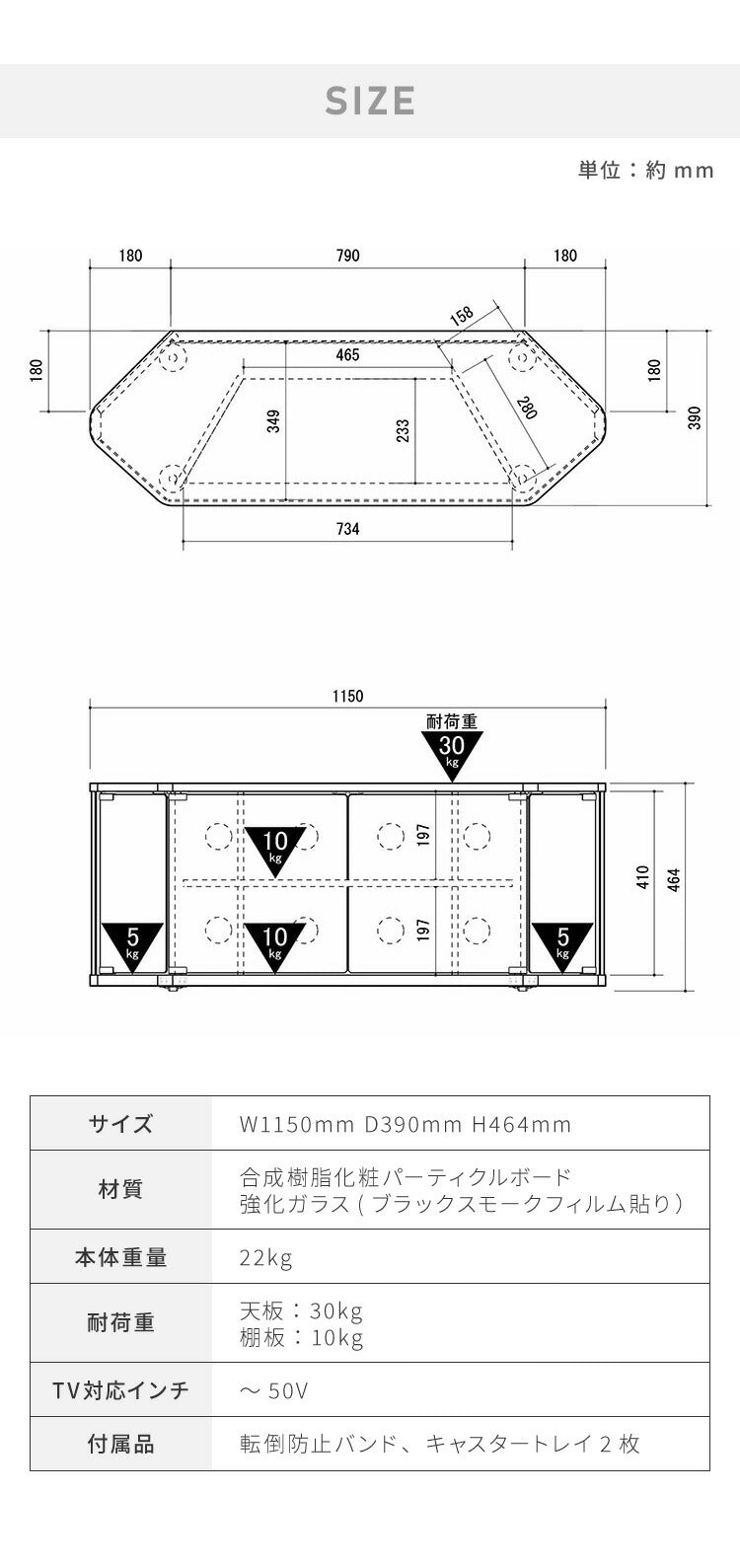 素材:合成樹脂化粧パーティクルボード、強化ガラス(ブラックスモークフィルム貼り