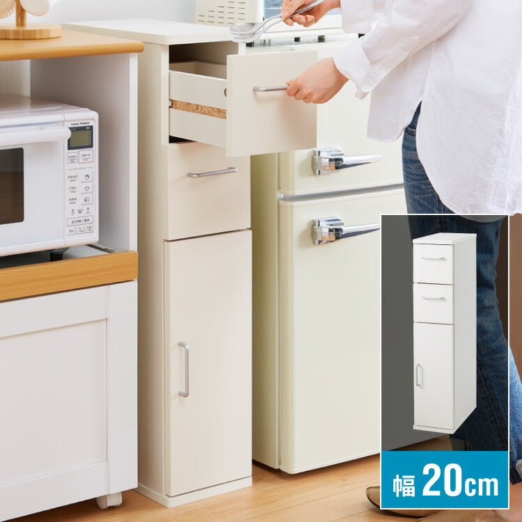 スタッキング すきま収納 20cm チェスト 隙間収納 キッチン収納 キッチンラック 幅20 食器棚 スタッキングできる ランドリーラック 白 (代引不可)