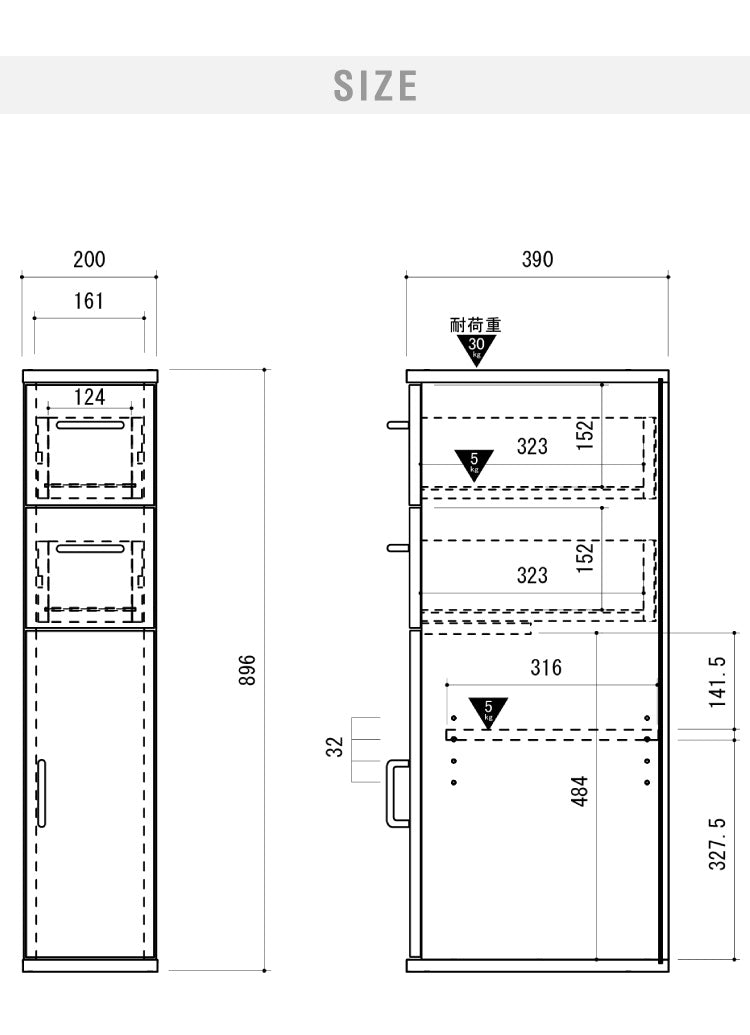 幅200×奥行390×高さ895mm。