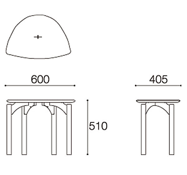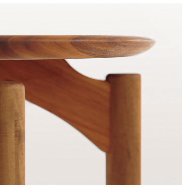 シンプルデザイン(曲線にて優しい)、オイルフィニッシュ(エゴマオイル)、ハンドメイド性(小ロッドにてこだわりのある製品作り) 天板の中央部に十字のインレイをはめ込みアイキャッチにしてます。