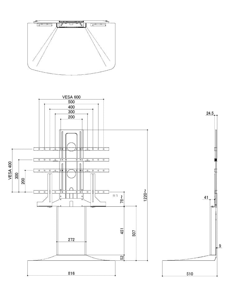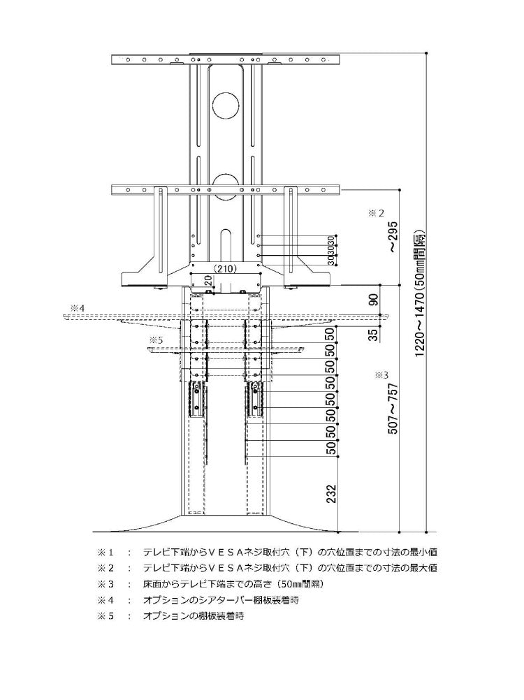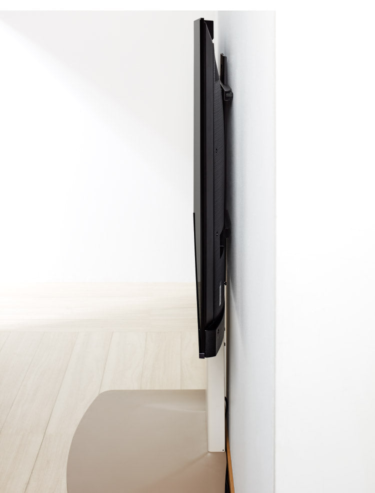 テレビと壁面との隙間を最小値2.5cmでまるで壁掛けテレビの様に薄型テレビを壁面に寄せて設置出来ます。