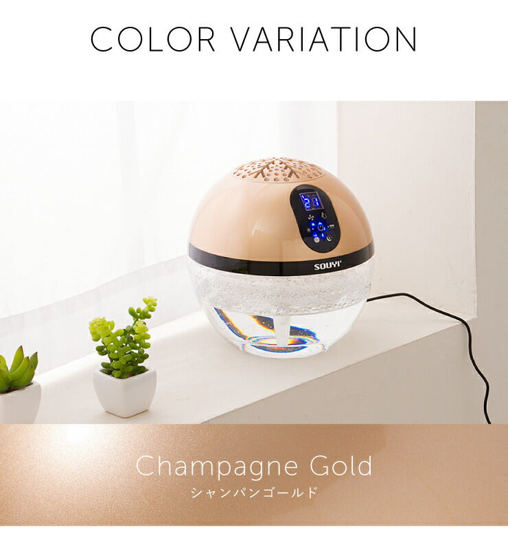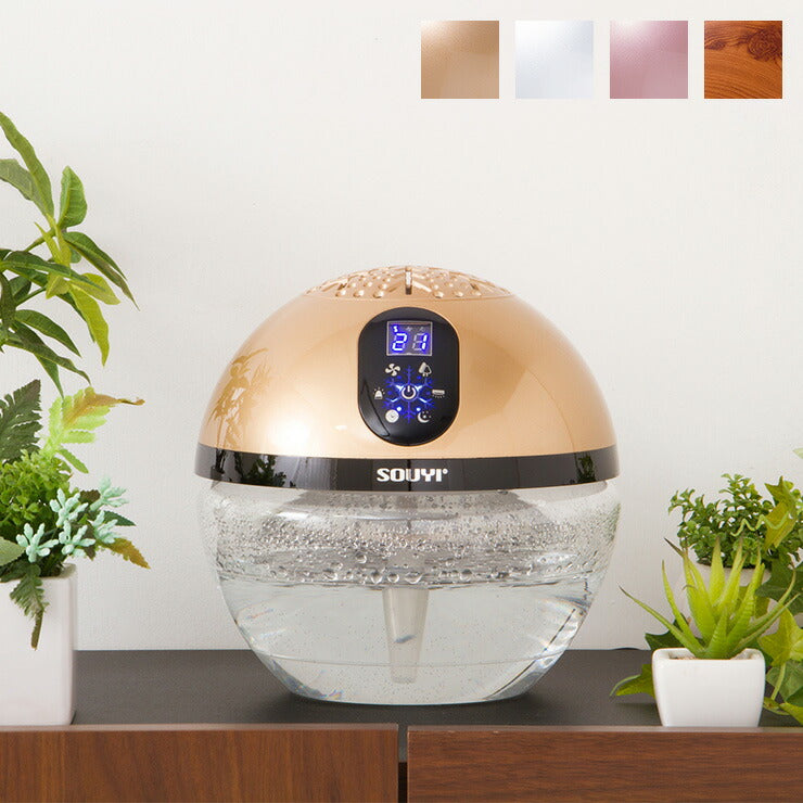空気清浄機 小型 バイオナースボール DX「水で空気を洗う」 アロマ空気清浄機 大容量 除菌 消臭付 タイマー機能 PM2.5 対応 花粉 黄砂 LEDライト シャンパンゴールド ウッドスタイル 水空気洗浄器 ソウイジャパン