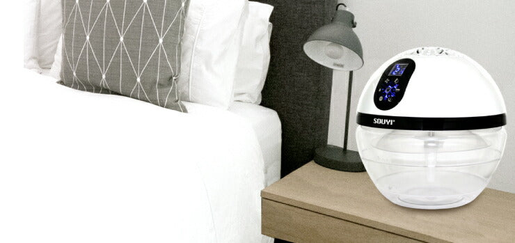 UV ランプと除菌イオナイザーを搭載し、ドイツの半導体クリーンルーム用水空気清浄の研究で生まれた「アロマ空気清浄機 大容量 抗菌消臭付 バイオナースボール DX」。球の中に水を入れるだけの大容量1.5L消臭抗菌UV水空気清浄機です。タッチパネルデジタル、多機能で新しくなって新登場です。