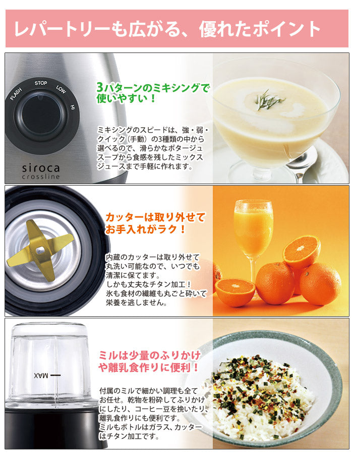 ミキサー ジューサー ミルミキサー siroca シロカ crossline ミル付きミキサーSJM-180