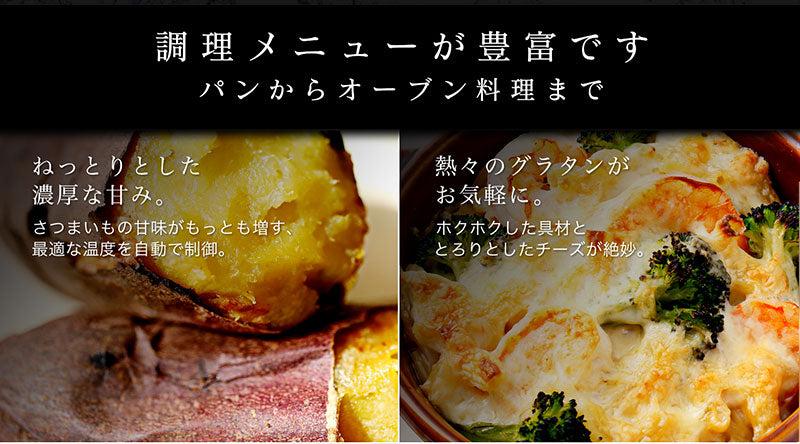 ・炎風テクノロジーを使用することにより、焼きムラをなくし、焼きあがり時間も早くなりました。