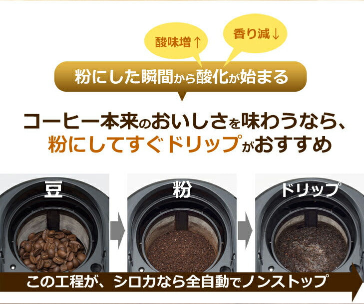siroca シロカ crossline 全自動コーヒーメーカー SC-A221SS シルバー ステンレスメッシュフィルター コーヒー豆 粉 保温機能付き