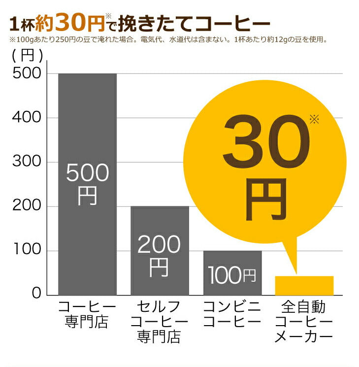 ●本体にミルを内蔵することにより、いつでも挽きたてのコーヒー豆から全自動でコーヒーを淹れられます。