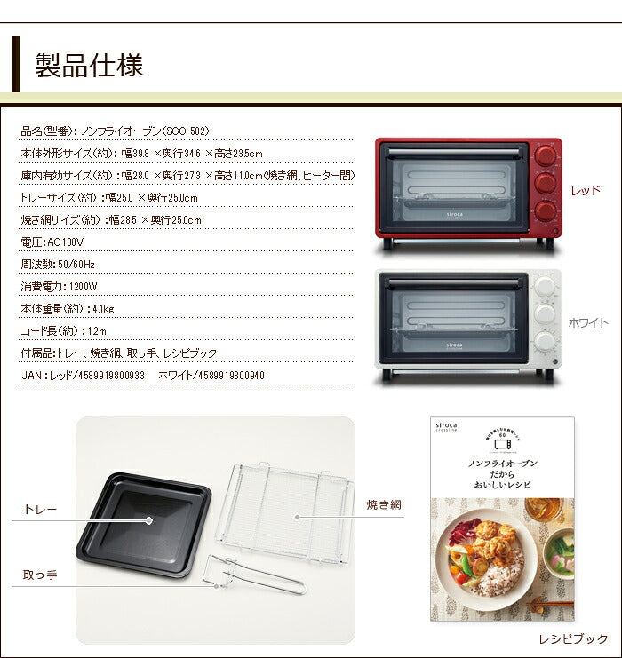 siroca シロカ crossline ノンフライオーブン SCO-502 トースト ヘルシー オーブン調理 ノンフライ コンベクションオーブン