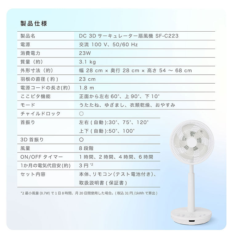 シロカ siroca DC3Dサーキュレーター扇風機 3D首振り 扇風機 サーキュレーター 風量調節 首振り 微風 寝室 衣類乾燥 暑さ対策 オンオフタイマー リビング 静か SF-C223