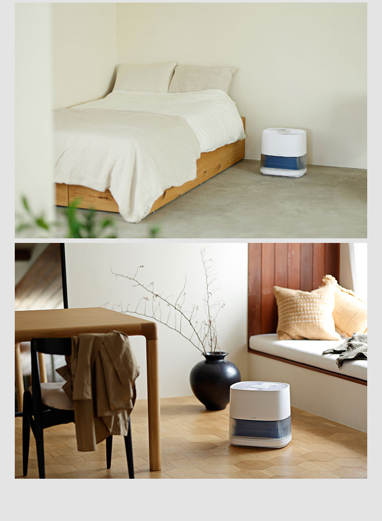 ・加湿方法は気化式を採用。ヒーターを使わないから安心。お財布にもやさしい。