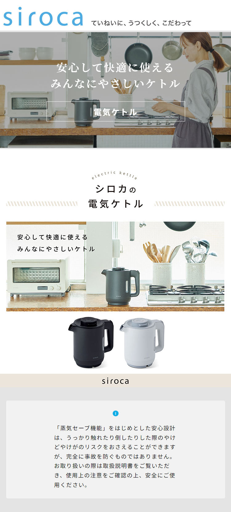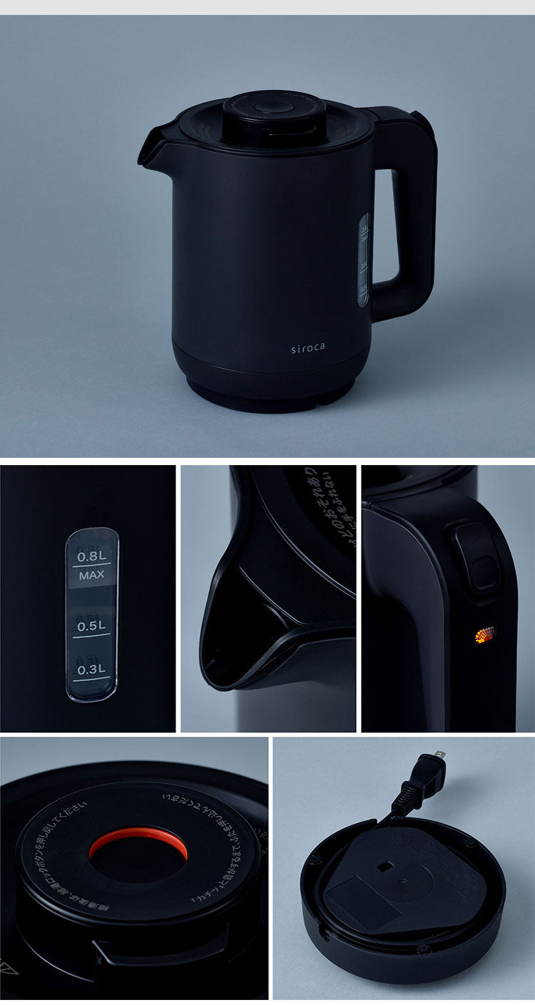 siroca 蒸気セーブ電気ケトル SK-A151 シロカ ケトル 0.8L ハイパワー 二重構造 ステンレス製 安心設計 Sマーク認証取得 ブラック グレー