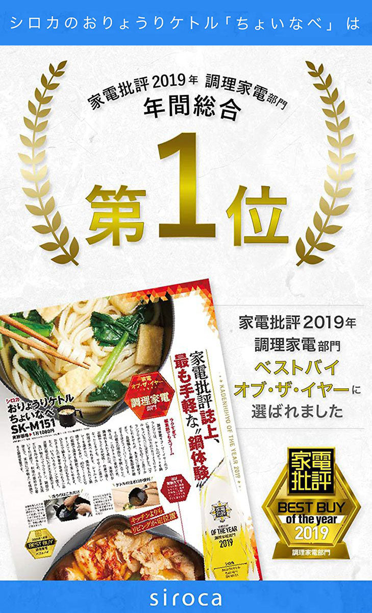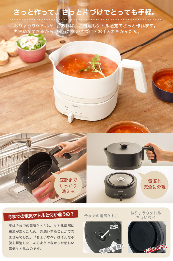 siroca シロカ おりょうりケトル ちょいなべ 電気ケトル SK-M151 1L ケトル 空焚き防止 丸洗い可 ポット 鍋
