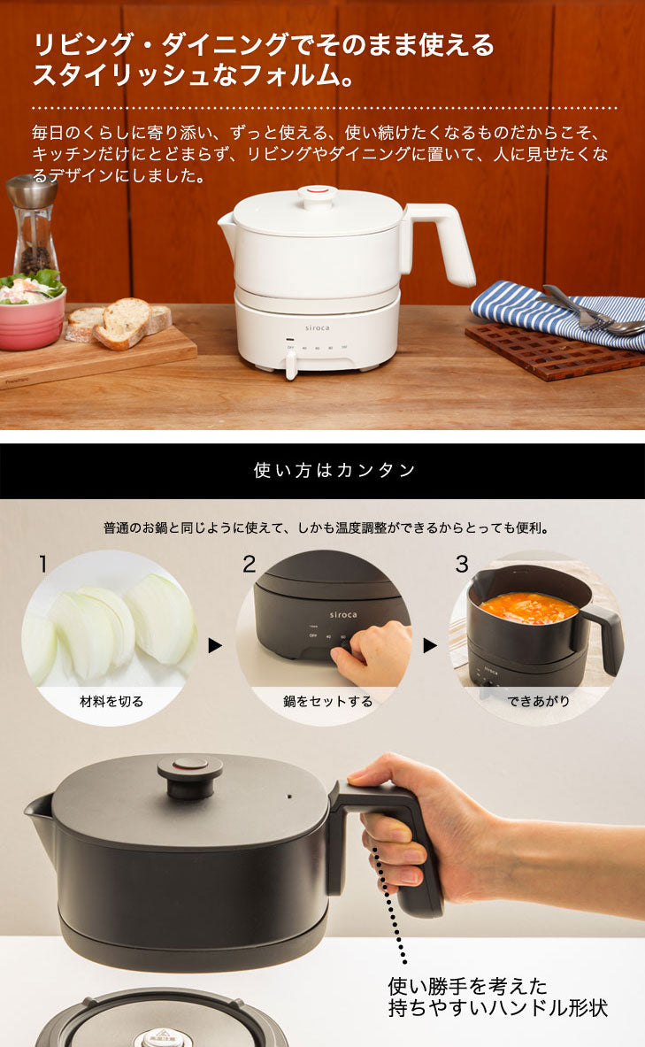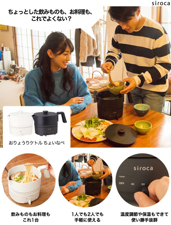 siroca シロカ おりょうりケトル ちょいなべ 電気ケトル SK-M153 1L ケトル 空焚き防止 丸洗い可 ポット 鍋