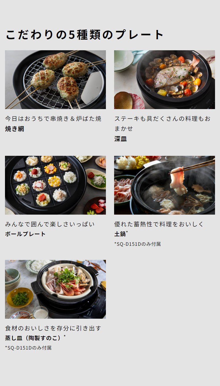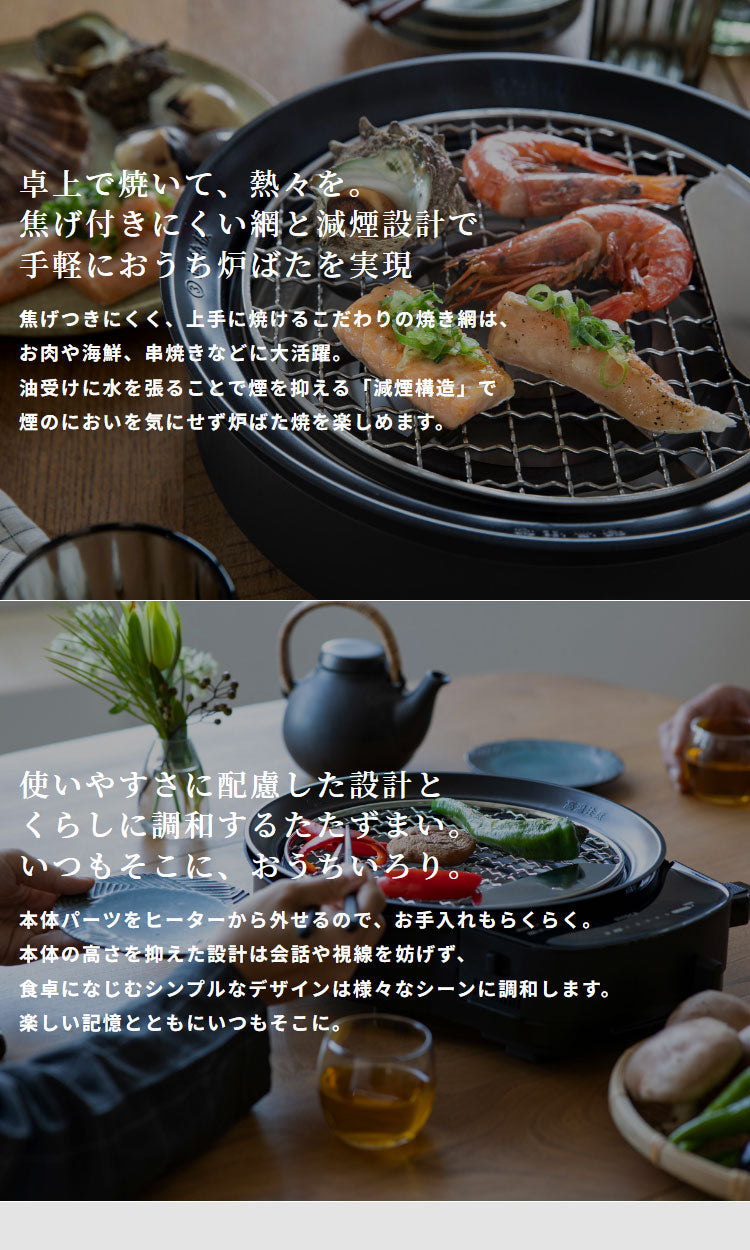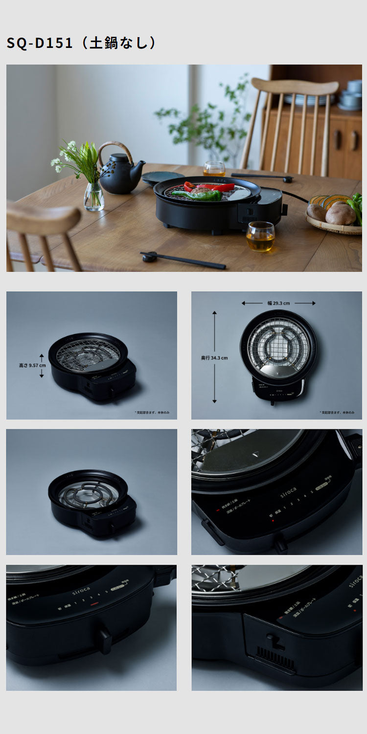siroca おうちいろり SQ-D151 土鍋なし 卓上調理器 伊賀焼窯元 長谷園製土鍋 減煙構造 高火力 ヘルシーモード お手入れかんたん コンパクト収納 串料理 あぶり焼き 炒め料理 煮込み料理 炉ばた焼