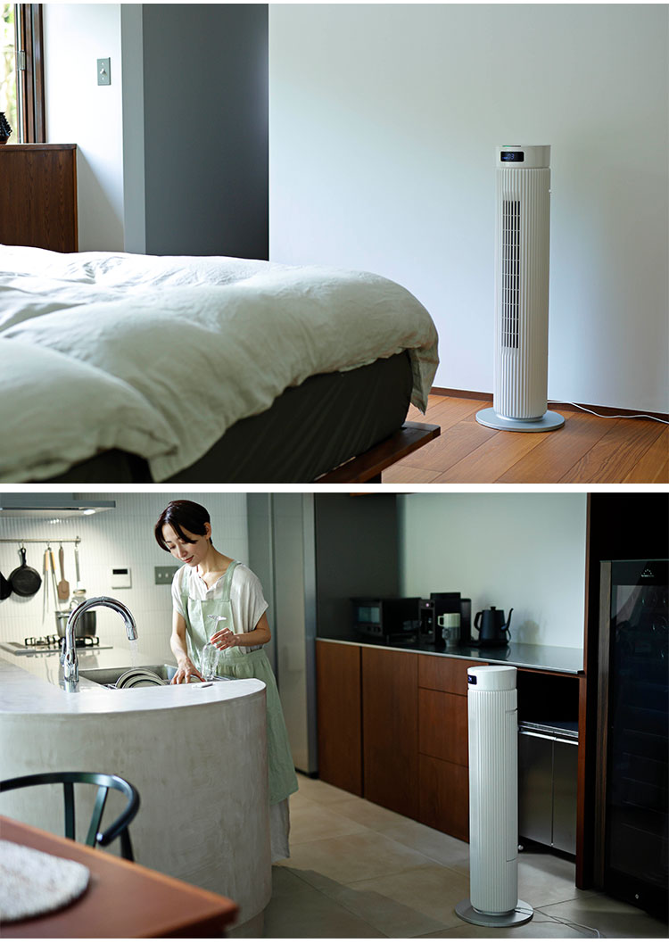・幅広い風を届ける独自技術「ふわビューンUZU」によりパワフルな風もやさしい風も届けます。