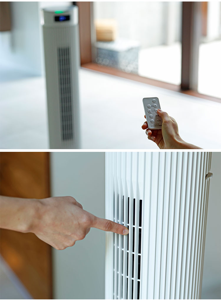 ・欲しいところに風を届ける「ここピタ」機能付き。風を向けたい方向にリモコンの「ここピタボタン」を長押しし、止めたい位置でボタンを離すことで、首の向きを細かく調節することが可能です。