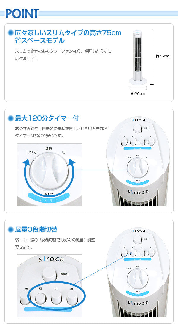 扇風機 タワーファン siroca STF-7501 サーキュレーター スリム