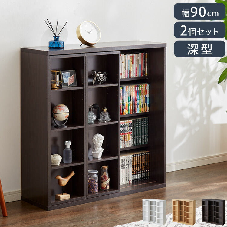 本棚 書棚 スライド式 幅90 ダブル 奥深タイプ 2個セット 奥行33 木製 コミックラック 漫画 書籍 収納 大容量 ブックシェルフ 木目 おしゃれ ブックラック 書斎棚