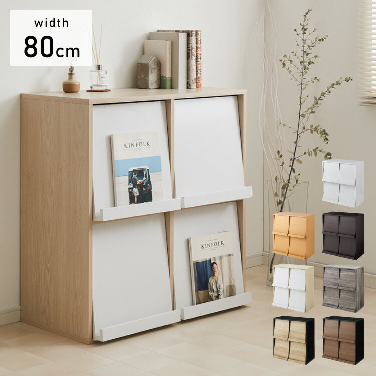 ディスプレイラック 扉2列2段タイプ 幅80cm 棚 ラック シェルフ キャビネット 収納 木製 北欧 フラップ扉 絵本棚 大容量 おしゃれ ウッドラック チェスト フラップラック (代引き不可)