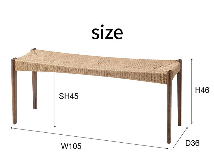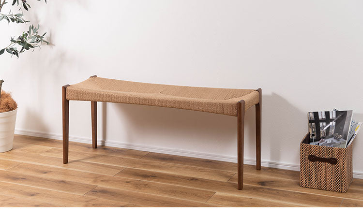 ペーパーコード ベンチ 幅105cm ダイニングベンチ 長椅子 チェア チェアー 椅子 イス 背もたれなし おしゃれ 木製 木脚 リゾート アジアン シンプル ナチュラル ブラウン(代引不可)