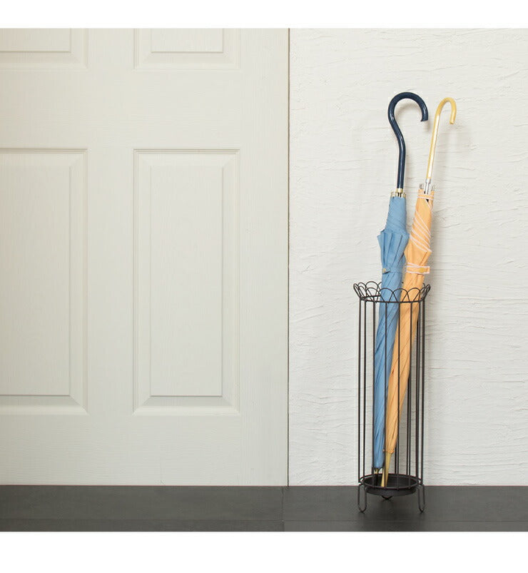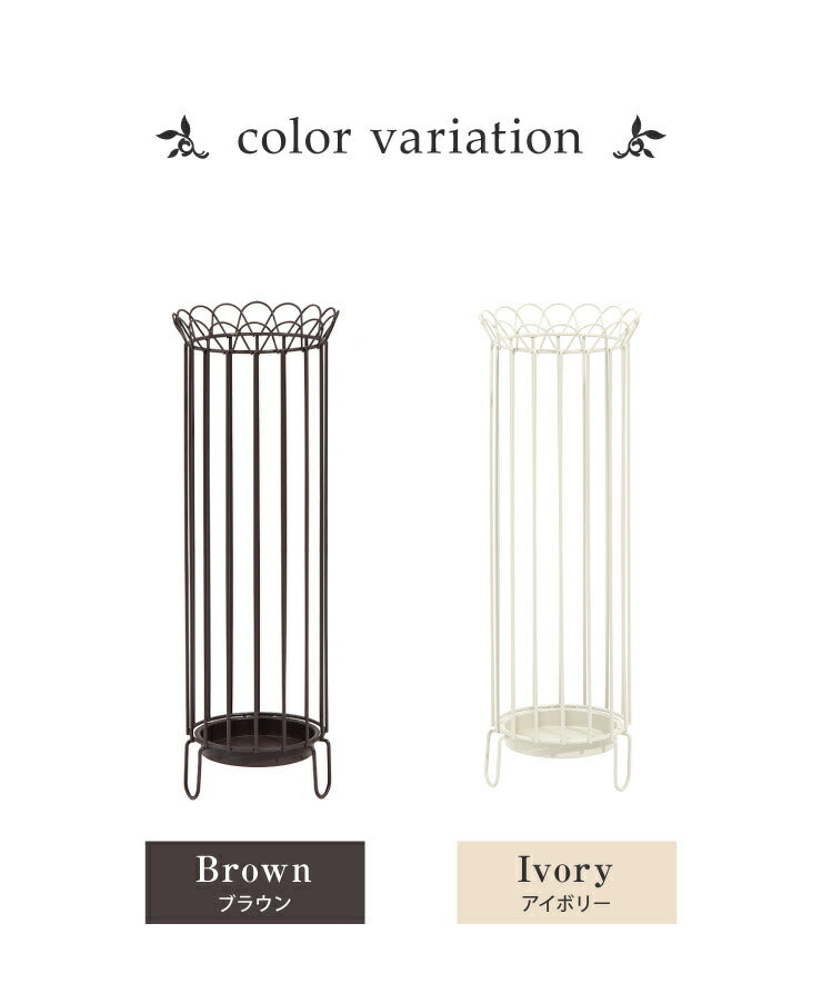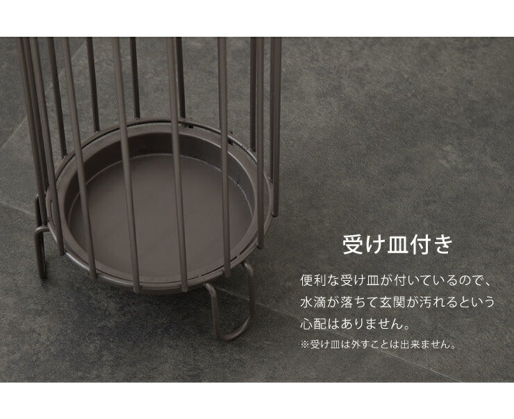 傘立て スリム 直径16cm 高さ47cm アイアン ブラウン アイボリー 受け皿付き アンティーク 北欧 シンプル ヨーロピアン 玄関 アンブレラスタンド アンブレラホルダー 玄関収納