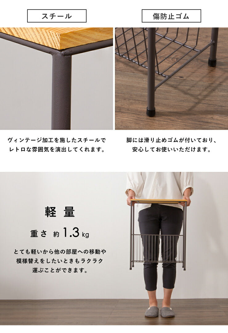 サイドテーブル 幅40cm 高さ50cm ナイトテーブル アイアン 木製 机 つくえ 小さいテーブル 小型テーブル おしゃれ 収納 ラック(代引不可)