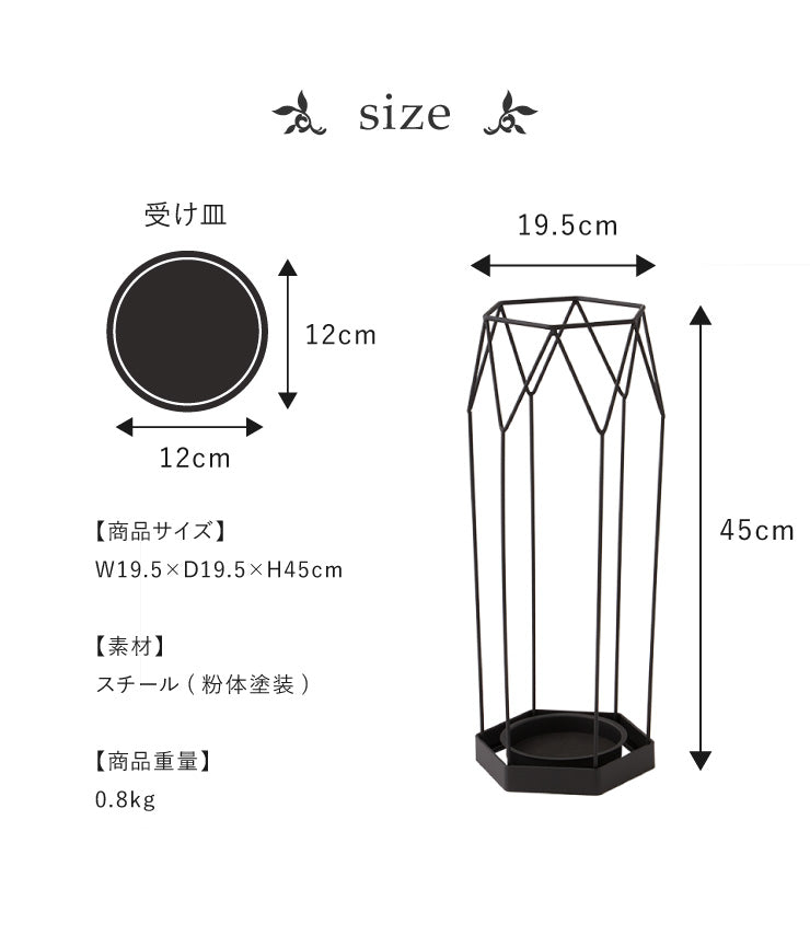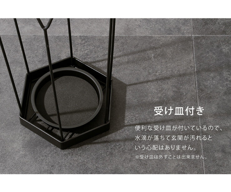 スチールを使用した、圧迫感のない開放的な傘立て。コンパクトなサイズ感で、玄関先に置いても邪魔になりません。どんな家にも合うシンプルなデザインとカラーを用意しました。