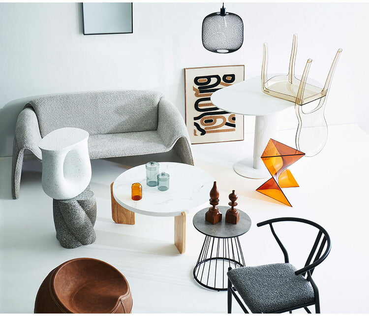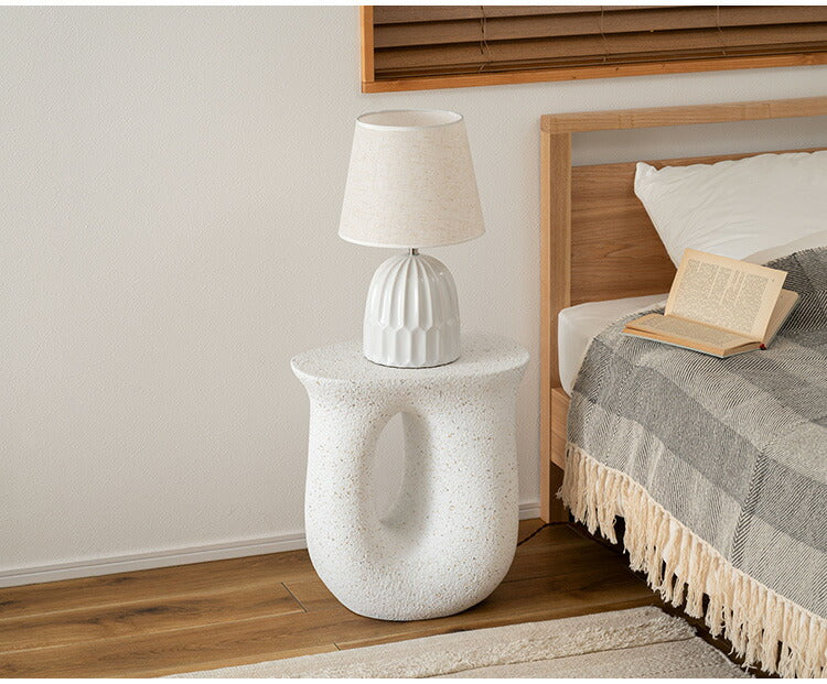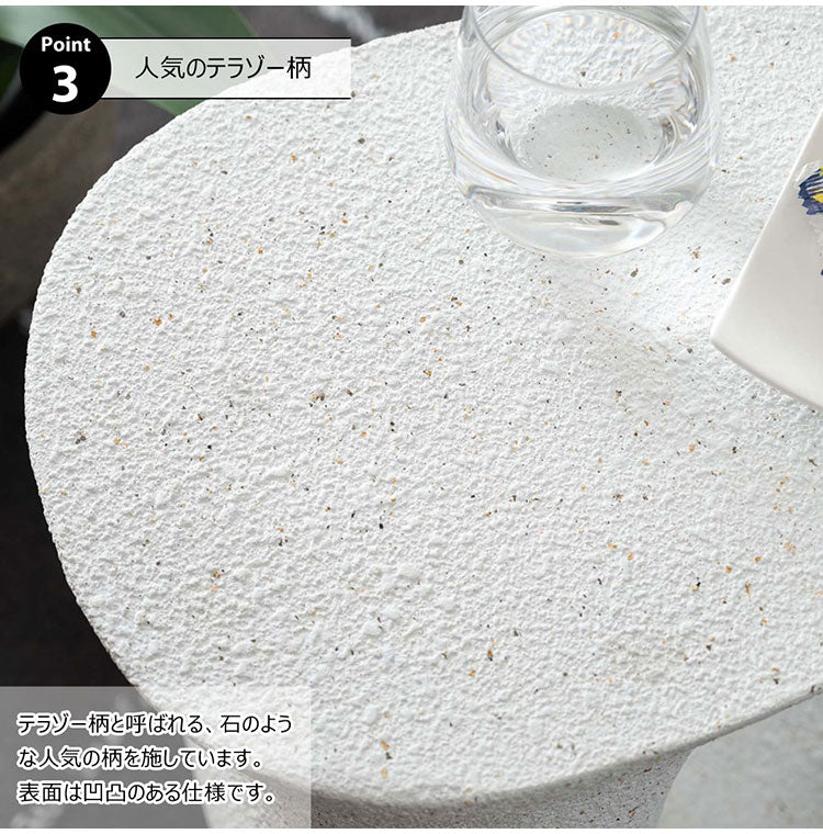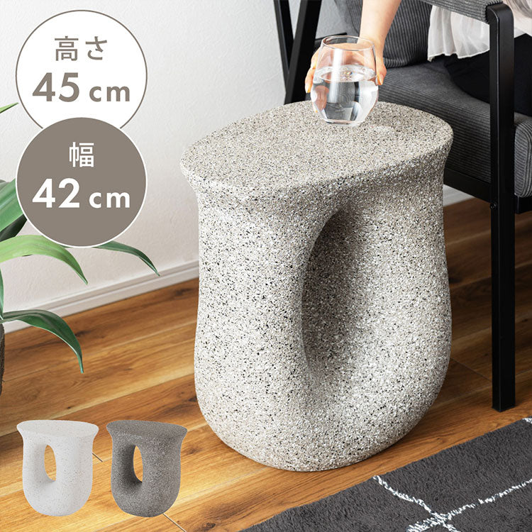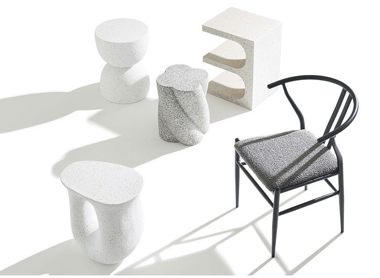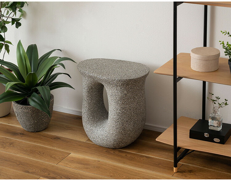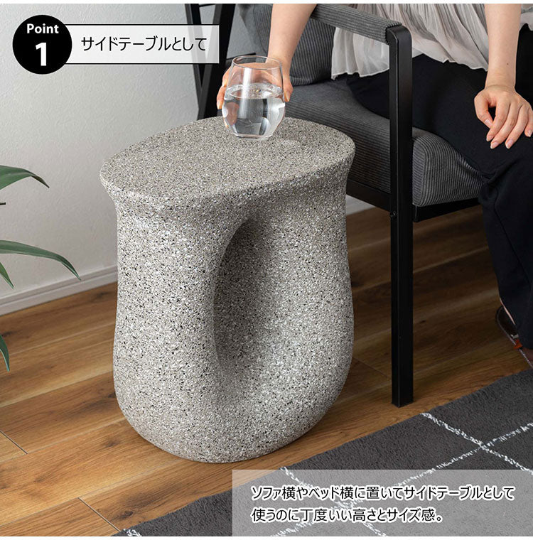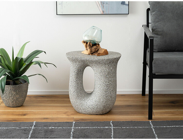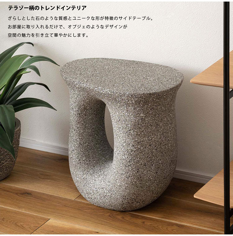 ●ざらりとした石のような質感とユニークな形が特徴のサイドテーブル。