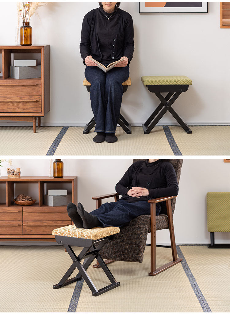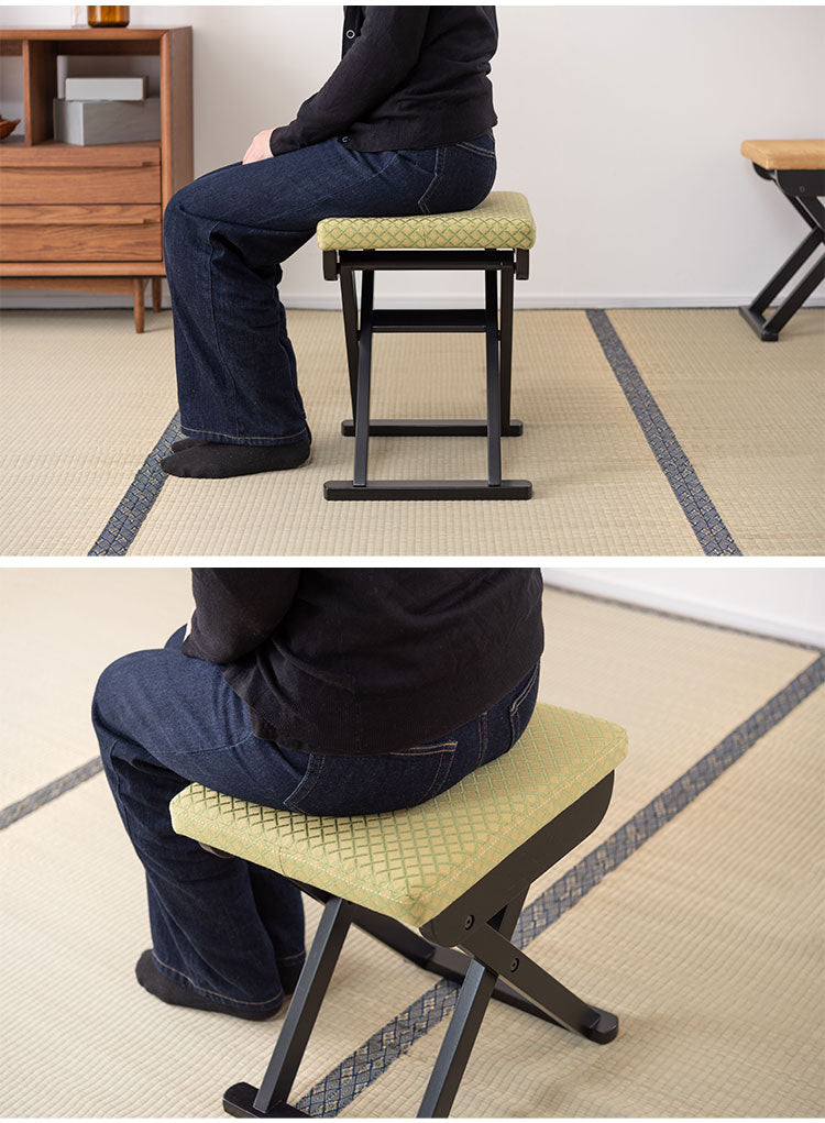 お座敷シリーズに軽くて持ち運びやすい折りたたみ式のスツールが登場しました。