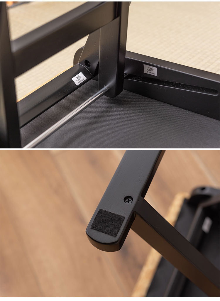 重さが分散されやすいスキー脚仕様で畳や床を傷つけにくく、ウレタン入りの座面はふかふかで長時間座ってもお尻が痛くなりません。