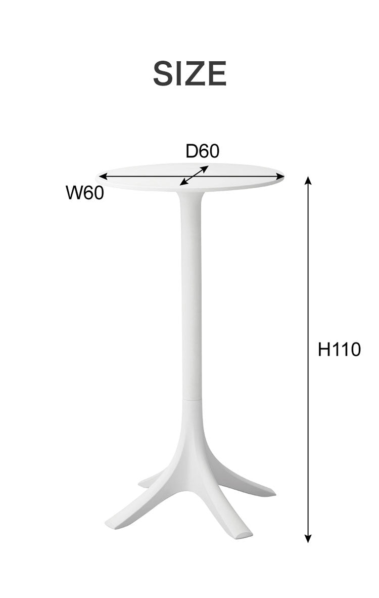 ハイテーブル テーブル バーテーブル おしゃれ デスク 丸 ラウンド サークル ポリプロピレン プラスチック 高さ110cm 幅60cm 黒 白 ブラック ホワイト シンプル(代引不可)