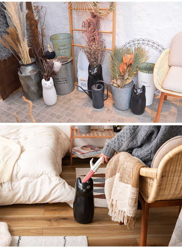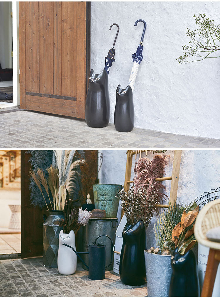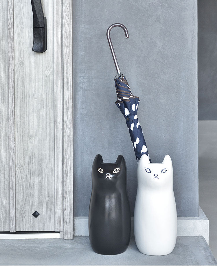 傘立て カサタテ シンプル アンブレラスタンド 傘入れ 玄関 スッキリ かさ 収納 陶器 マット コンパクト スリム ねこ 猫 かわいい フラワーベース ポスター収納 室内 室外 ホワイト ブラック ブラウン(代引不可)