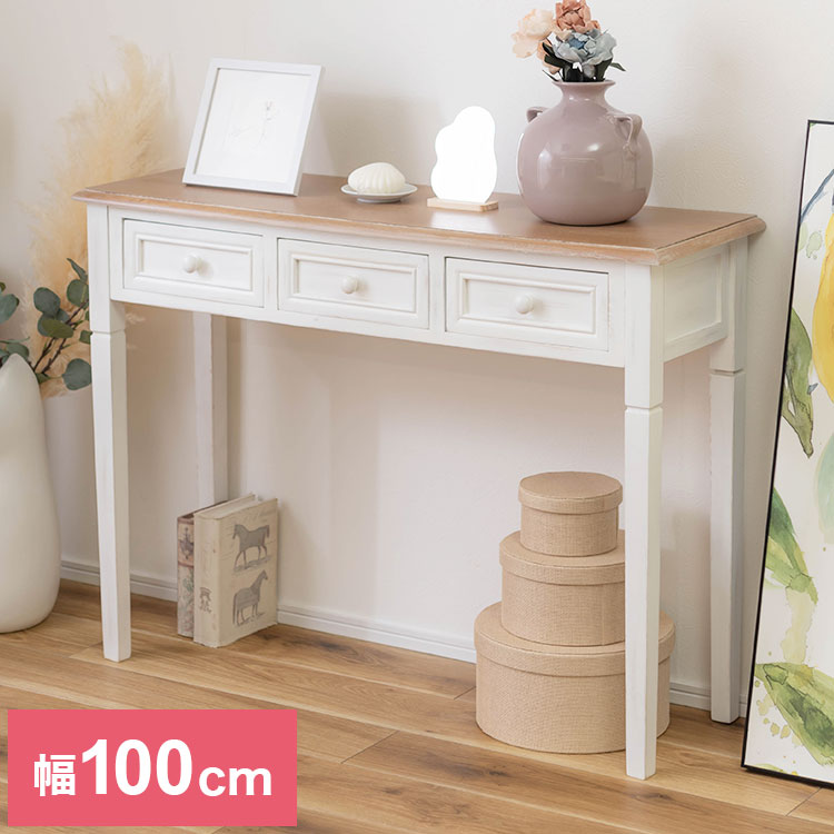 デスク 幅100cm コンソールテーブル 天然木 軽量 作業台 化粧台 北欧 おしゃれ モダン アンティーク風 机 軽い ナチュラル カフェ ヴィンテージ風 人気 木製(代引不可)