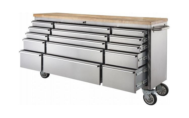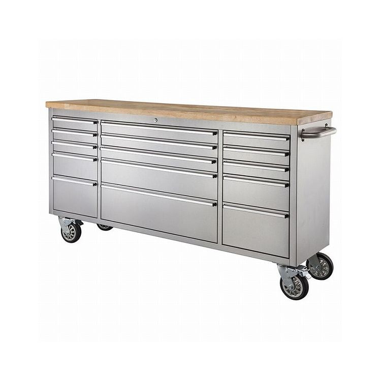 ツールキャビネット シルバー 幅199cm ステンレス 収納家具 天然木 ラバーウッド インテリア 家具 シンプル 新生活 2人掛けカウンター 移動式 おしゃれ 作業台 ツールワゴン(代引不可)