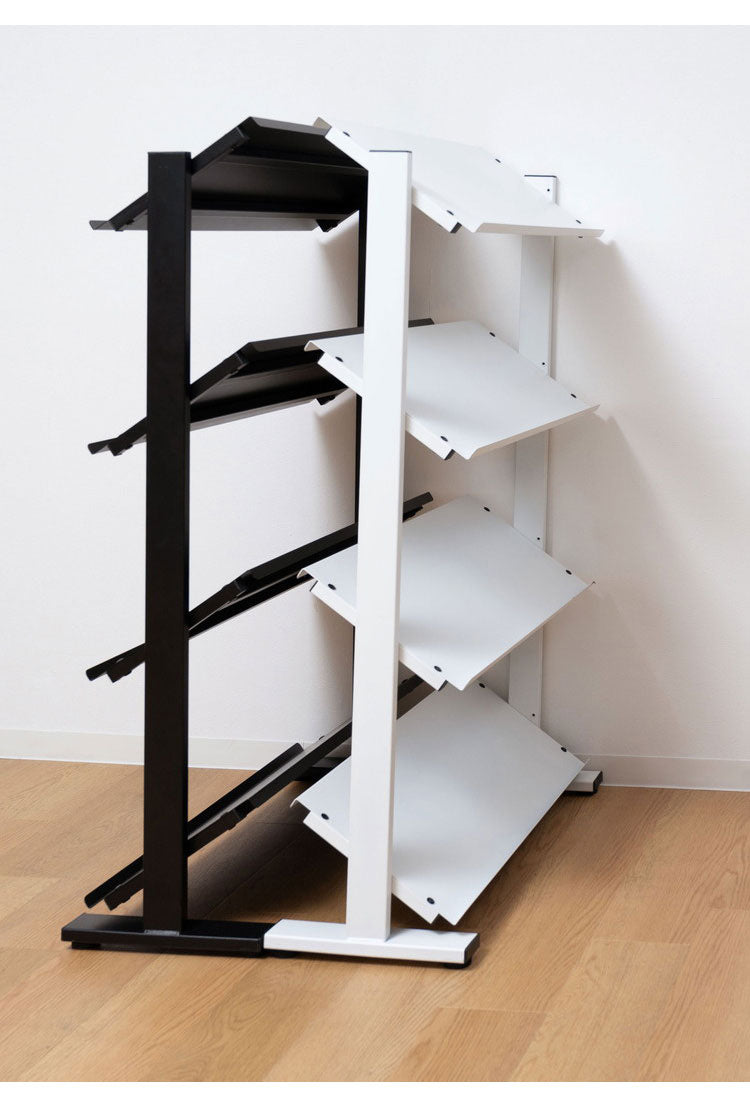 棚板を水平、斜めに変更できる2WAY仕様のラック。インテリアとしてはもちろん、お店の什器としてもお使いいただけます。