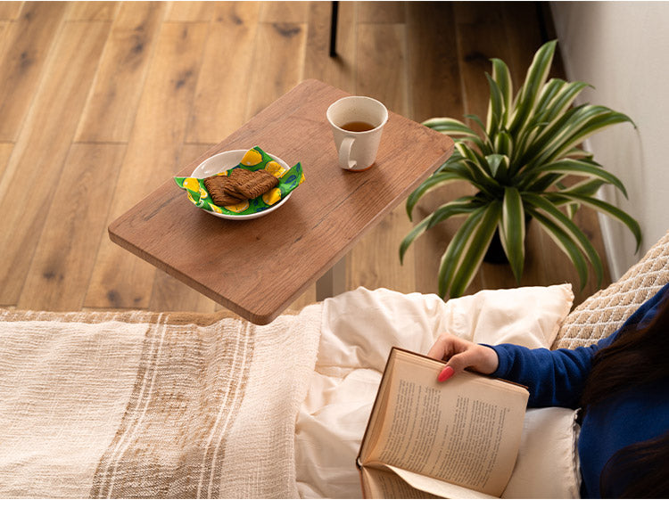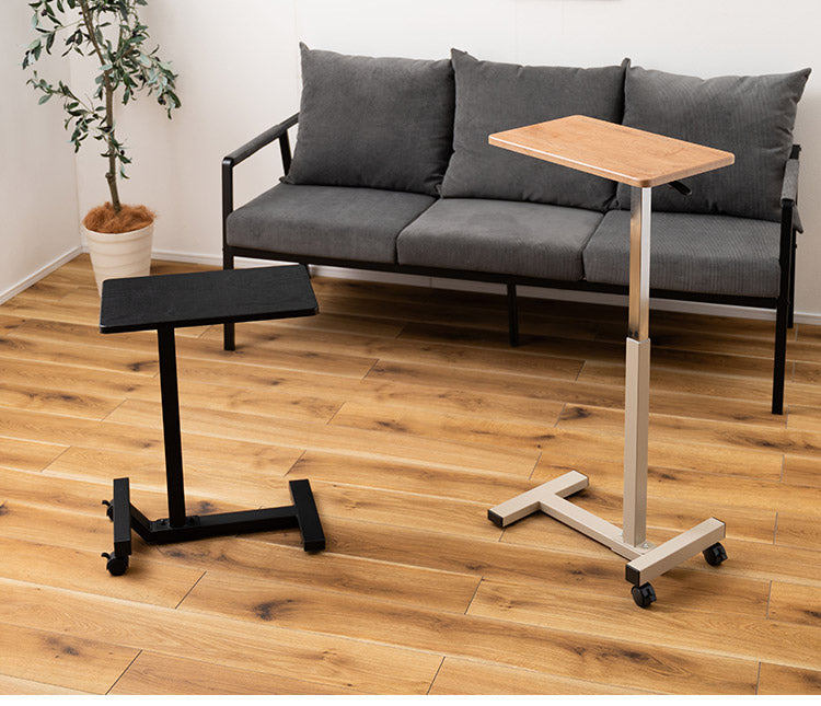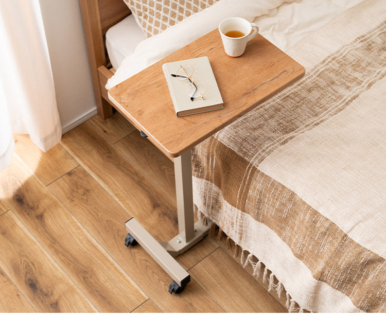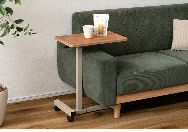木目柄が特徴的な、シンプルデザインの昇降サイドテーブル。