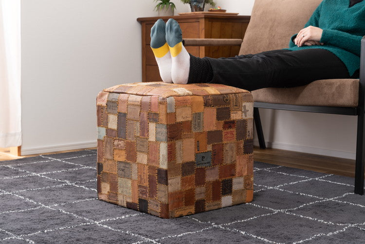 スツール キューブスツール おしゃれ タグ 腰掛け レザー ラウンドスツール 個性的 ヴィンテージ ラウンド 丸 大きめ オットマン リビング 寝室 店舗 ディスプレイ(代引不可)