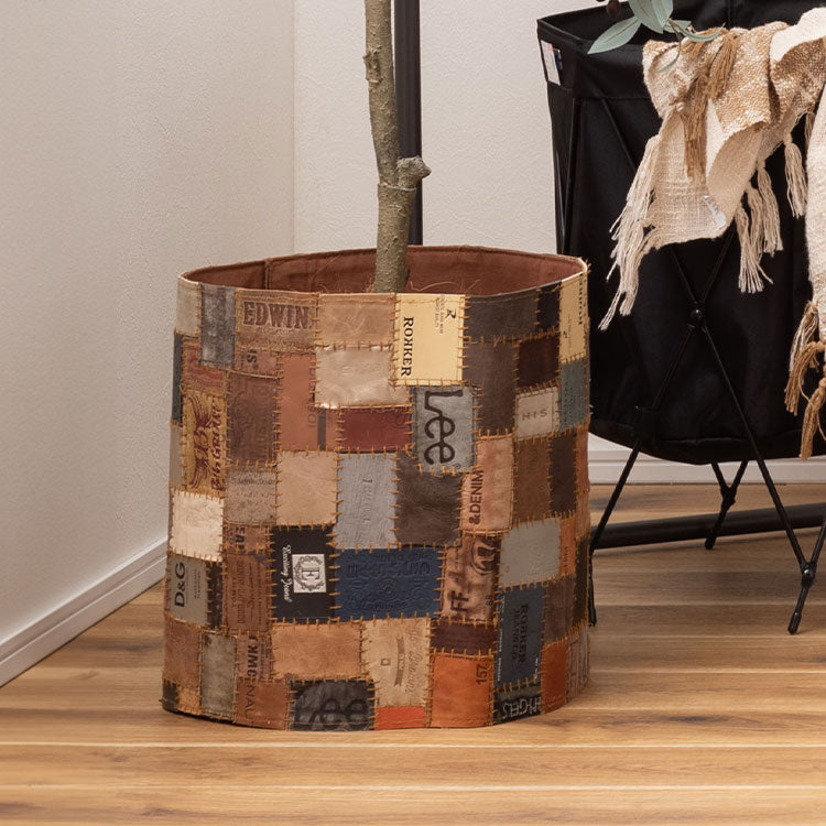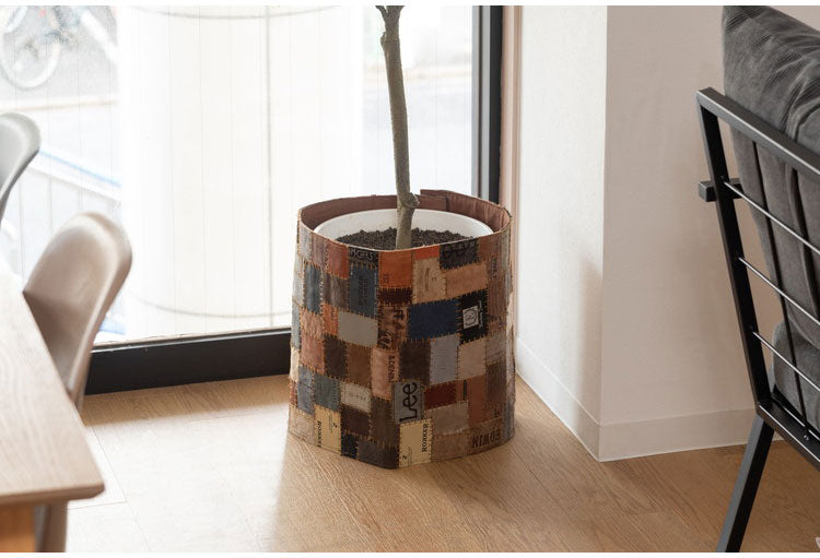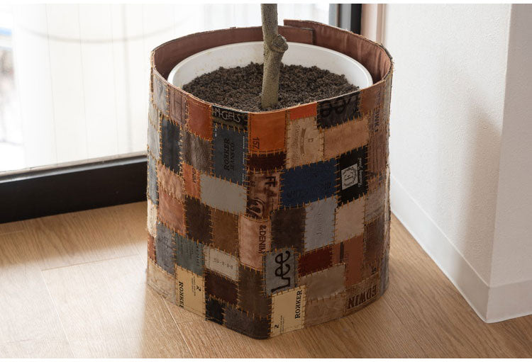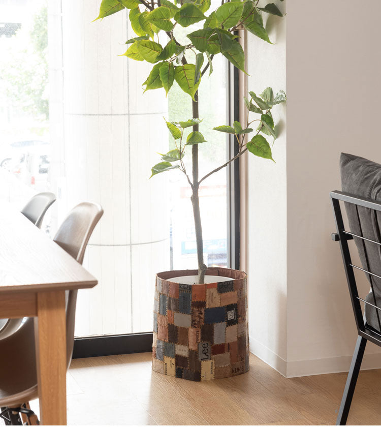 プランターカバー Mサイズ ボタン 本革コットン カバー 屋内用 ガーデニング インテリア おしゃれ 北欧 かわいい シンプル 雑貨 ナチュラル 植木鉢(代引不可)
