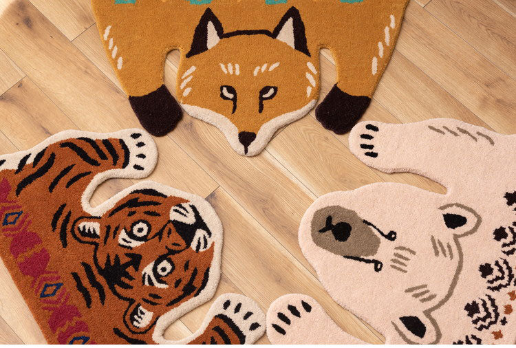 アニマルラグ トラ 虎 タイガー 狐 きつね 熊 くま かわいい おしゃれ インテリア カーペット 絨毯 個性的 アニマル 動物 セパレート 癒し(代引不可)