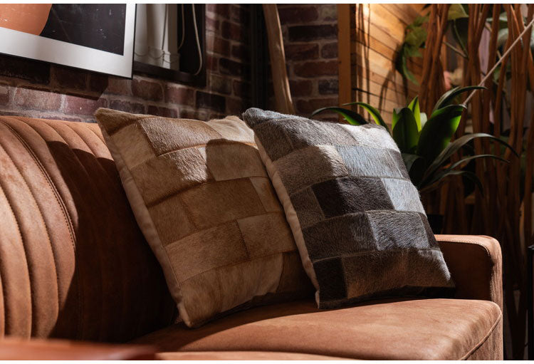 トーンをそろえた様々な毛色をパッチワークでデザインされた個性的な表情が魅力です。
