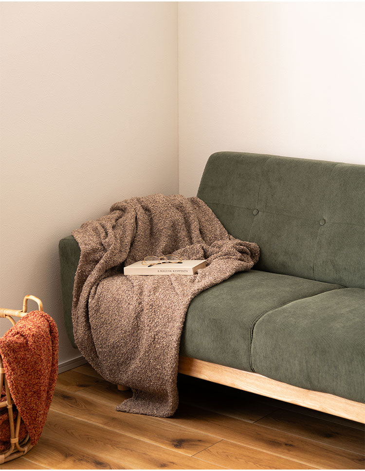 スローケット 薄手 ブランケット 大判 茶色 ブラウン 長方形 おしゃれ ブークレ生地 くすみカラー 寝室 無地 シンプル 四角 リビング もこもこ 北欧 モダン 大きめ ベッド ひざ掛け(代引不可)