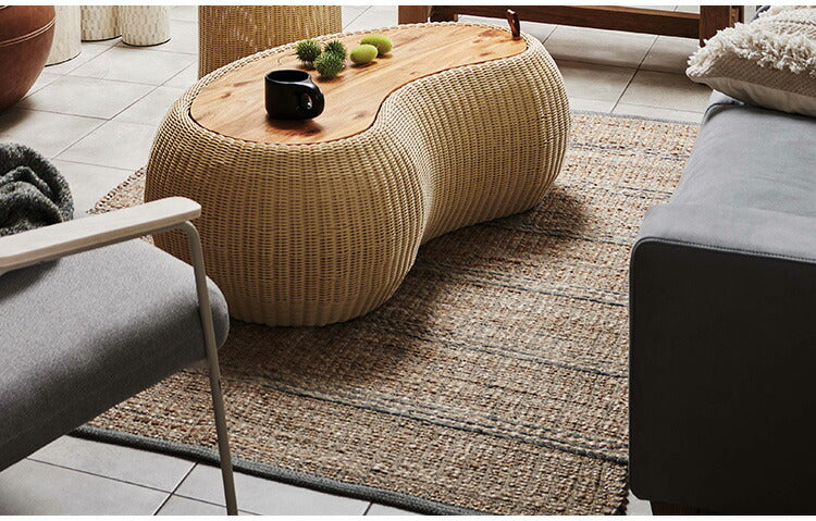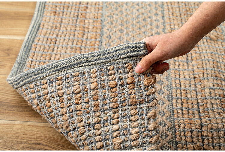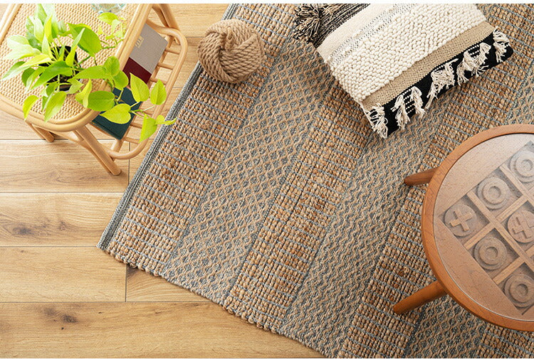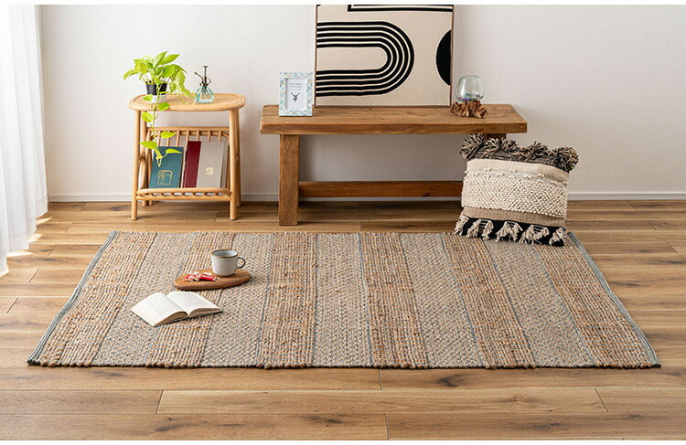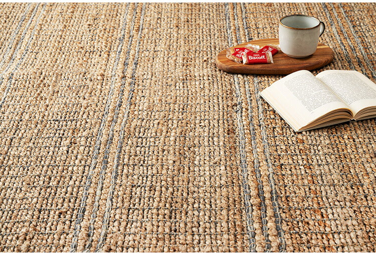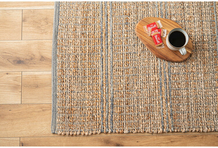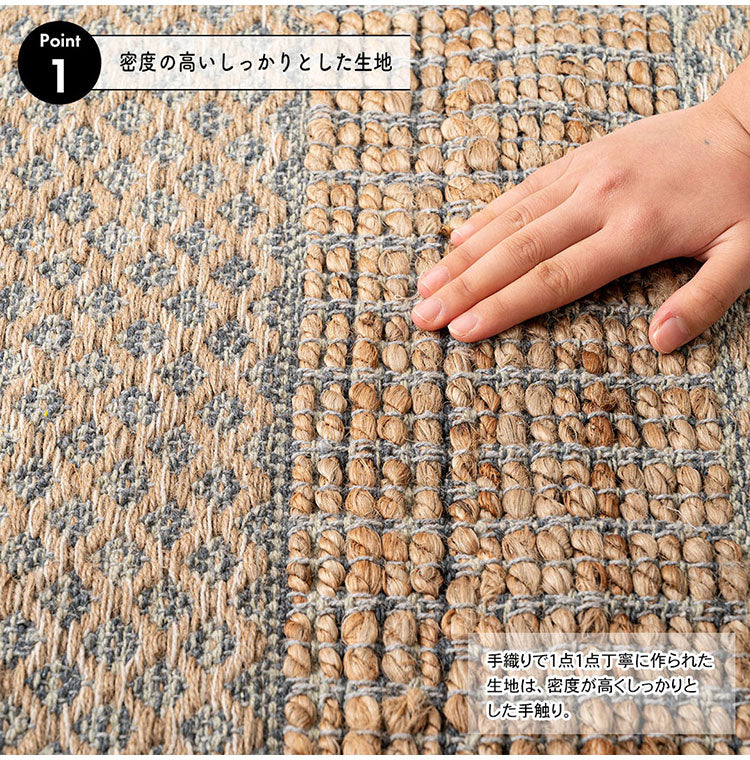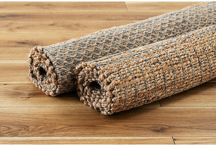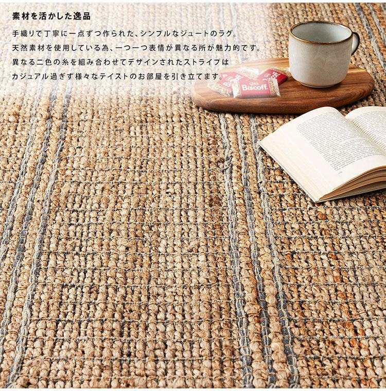 ●手織りで丁寧に一点ずつ作られた、シンプルなジュートラグ。