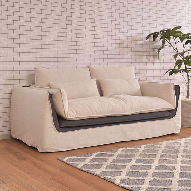ソファ ソファー 横幅211cm 広め 布地 ファブリック ダブルクッション仕様 モダン シンプル ベーシック ナチュラル おしゃれ カバーリング アイボリー(代引不可)